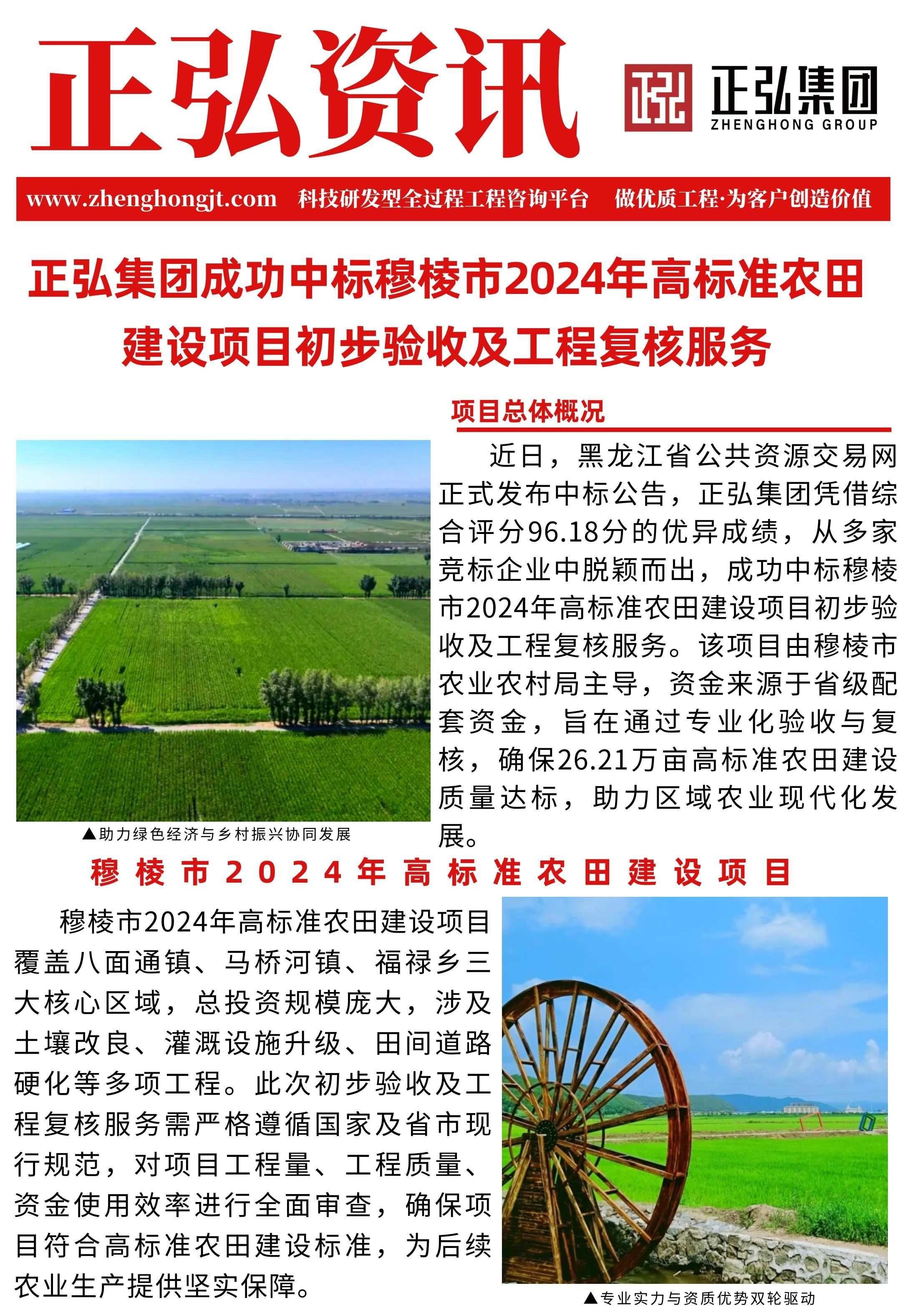 【工程资质加盟】正弘集团成功中标穆棱市2024年高标准农田建设项目初步验收及工程复核服务