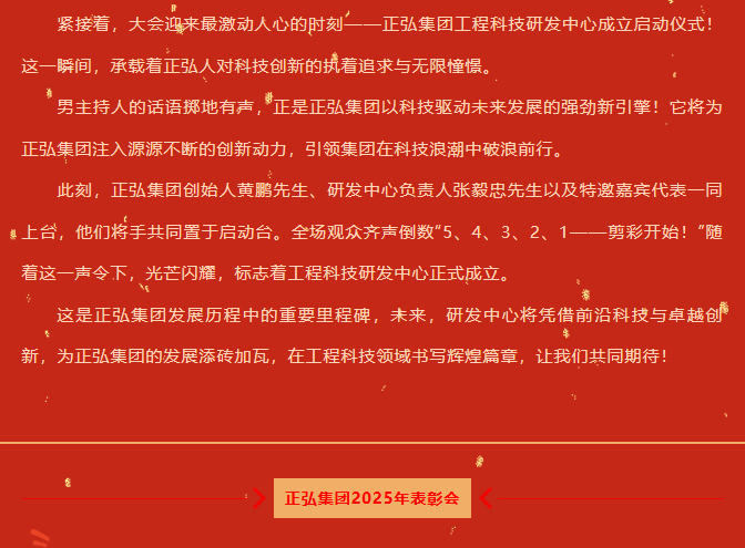 凝心聚力·科智未来——正弘集团2025年表彰会暨工程科技应用研发中心成立启动大会