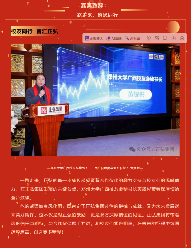 正弘资讯 | 正弘集团董事长兼CEO黄鹏成功当选郑州大学广西校友会会长